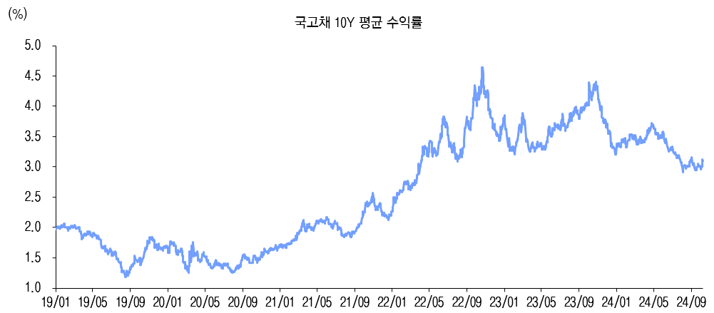 - WGBI를 추종하는 글로벌 자금 규모는 2.5~3조 달러로 추정되며 한국 국채의 비중은 약 2.2% 정도를 차지할 것으로 FTSE 러셀은 예상함. 즉, 한국 국채 시장에 유입될 패시브 자금은 약 550~660억 달러(한화 74조~89조원)에 육박하며 이는 연간 국고채 순발행 규모인 90조원 수준에 맞먹는 수준.