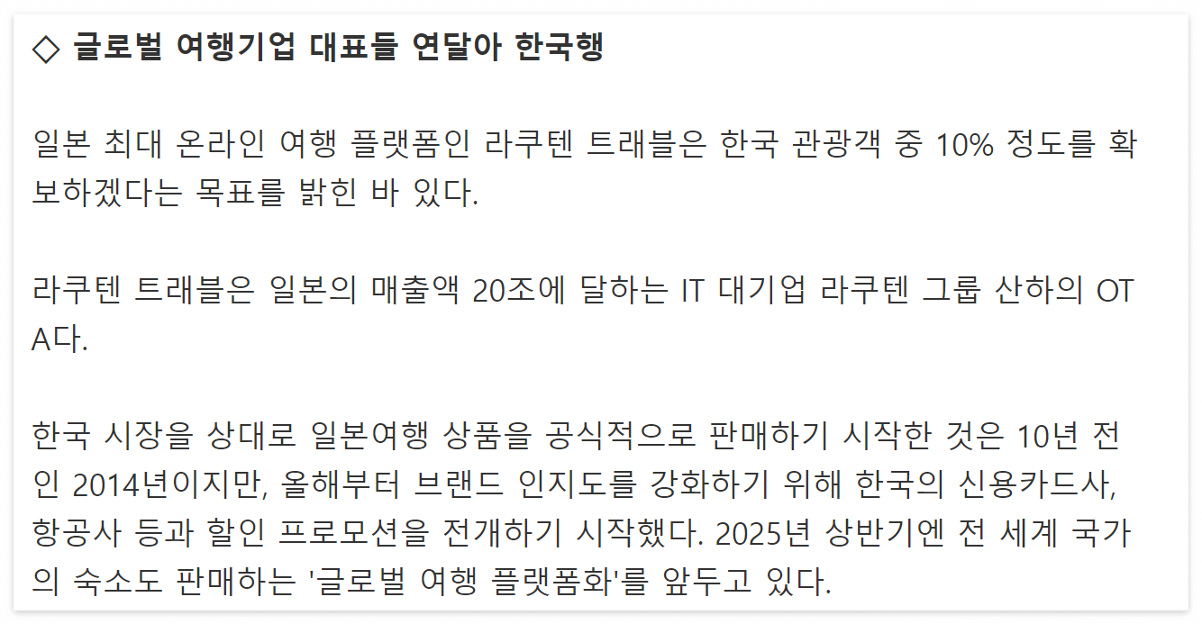 이런 여행 맛집 한국을 두고 글로벌 여행기업들이 입맛을 다시고 있다고 한다.