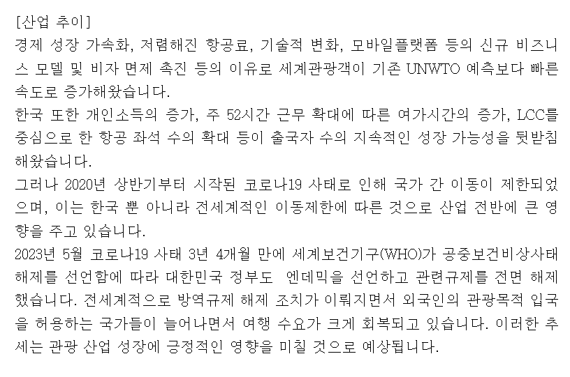 2023, 2024년에 해외여행 시장이 정말 많이 회복이 되긴 했는데