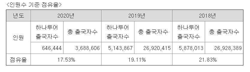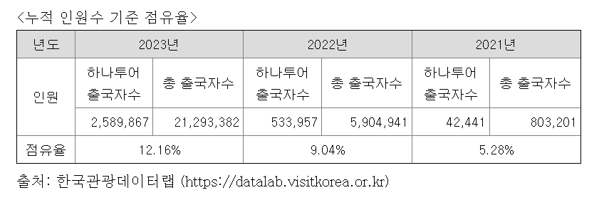 최근 데이터를 보면 하나투어를 통해 출국하는 여행객 비중이 점차 늘어나는 것 같은데? 싶지만