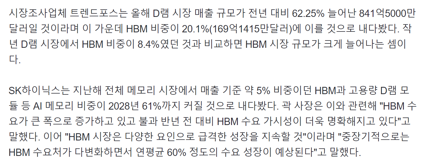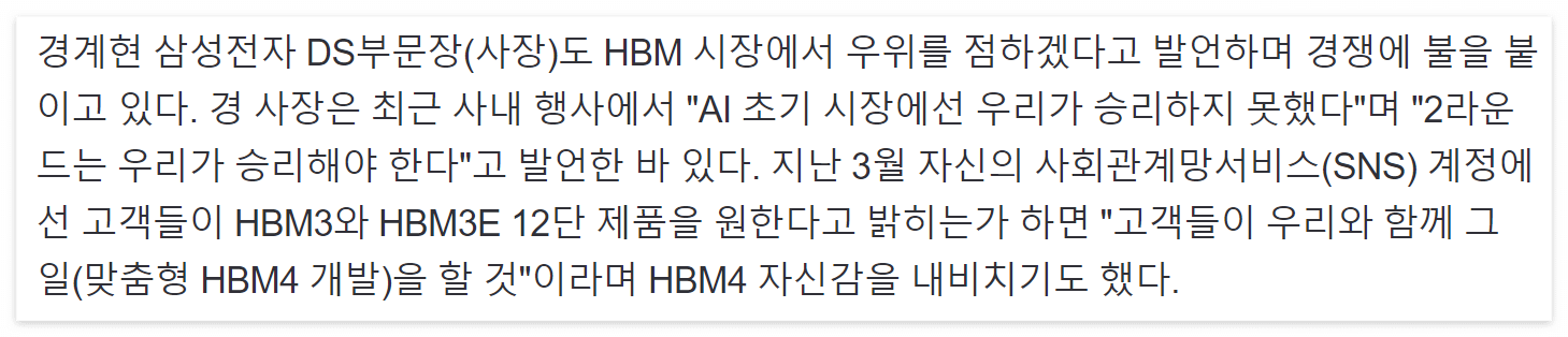 이로써 HBM에 대한 이해는 어느정도 했고, 이제 기사로 돌아와보면