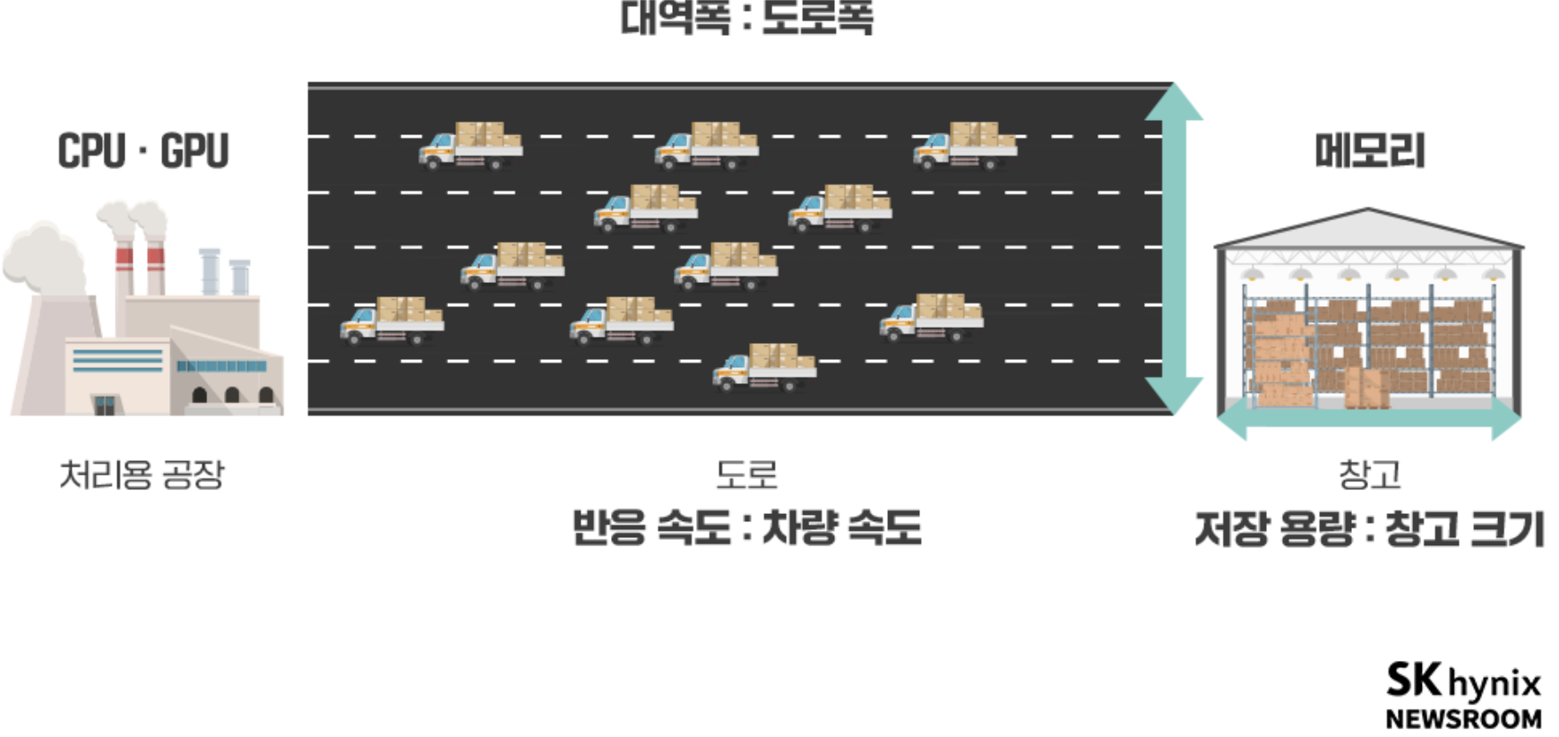 메모리의 경우 중요한 요소가 '저장용량', '반응 속도', 그리고 '대역폭'이라고 한다.